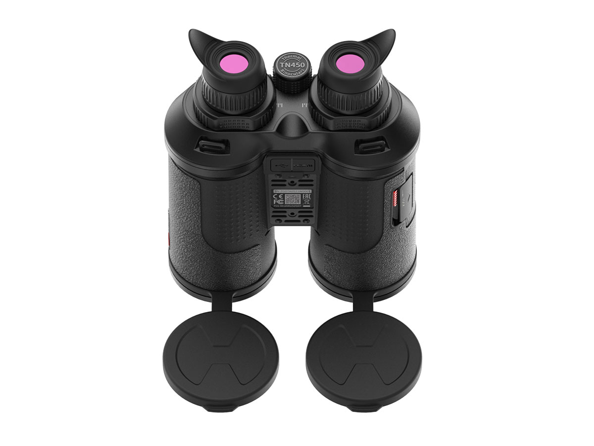 Бинокулярное зрение. Удобная подстройка и фокусировка. Guide TN450 выполнен в форм-факторе дневных биноклей с центральной фокусировкой. Изображение с ИК-объектива передаётся на микродисплеи в окулярах, и наблюдение ведётся сразу двумя глазами, а не одним, благодаря чему улучшается восприятие глубины и контраста, и сам процесс становится более комфортными и менее утомительным. Механика понятная и привычная: резкость наводится плавным вращением фокусировочного барабанчика, межзрачковое расстояние меняется подвижкой окуляров, а диоптрийная подстройка выполняет отдельно для левого и правого глаза.