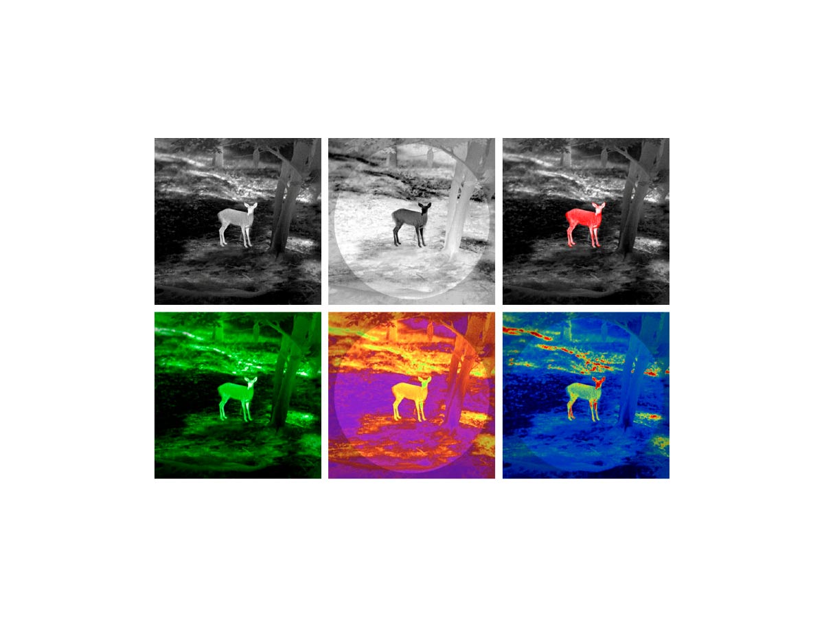 Большой дисплей. В окулярном блоке установлен цветной LCOS дисплей с большим разрешением 1280×960, и изображение воспринимается глазом так же, как картинка на 22-дюймовом экране с расстояния в 1 метр. 6 палитр адаптируют изображение с учётом особенностей зрения и предпочтений наблюдателя, под конкретные задачи или условия наблюдения. Для защиты от запотевания и конденсата на внешнюю поверхность стекла нанесено специальное покрытие, а наглазник хорошо маскирует свечение дисплея.