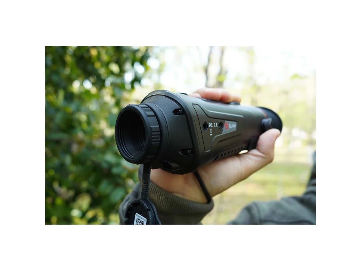 Портативный тепловизионный монокуляр Guide TK431 (2,3x, F35mm) с матрицей 400x300 с размером пикселя 17мкм можно использовать для наблюдений в городе и на природе, во время походов и путешествий, на охоте или рыбалке, для самозащиты, ночного патрулирования и поисково-спасательных мероприятий.